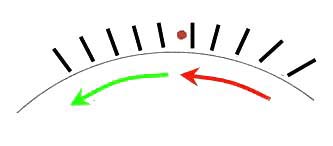 from the 9 o'clock position to the 3 o'clock position as seen in