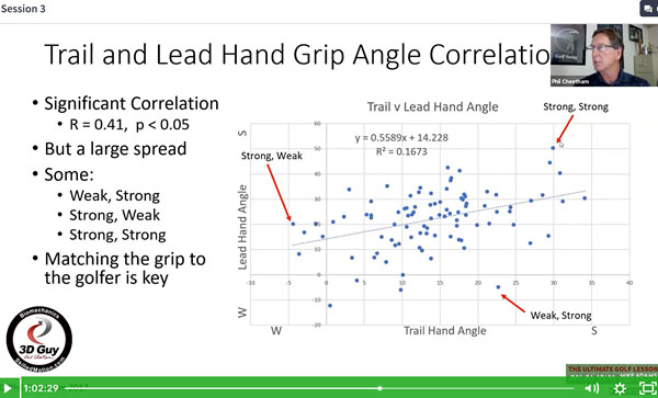 Sasho apparently choose 19 pro golfers who had the weakest trail hand grip strength and 19 pro golfers who had the strongest trail hand grip strength for his small research study involving only 38 pro golfers and I am not aware that Sasho made sure that two groups were equally balanced in terms of their lead hand grip strength.