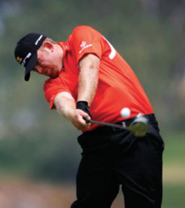 Note how the clubshaft bypasses JB Holmes' left arm in his early followthrough as he fully straightens his right wrist and simultaneously bends his left wrist (in order to allow the right wrist to fully straighten without creating any left hand impedance to an active right wrist straightening action).