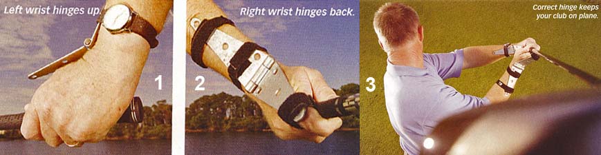 Jim McLean and David Leadbetter, two highly regarded golf instructors, both advocate getting the clubshaft "on-plane" by setting the wrists during the mid-portion of the backswing. The acceptable inner-outer limits to the corridor of success for being "on-plane" is demonstrated in the following photo.